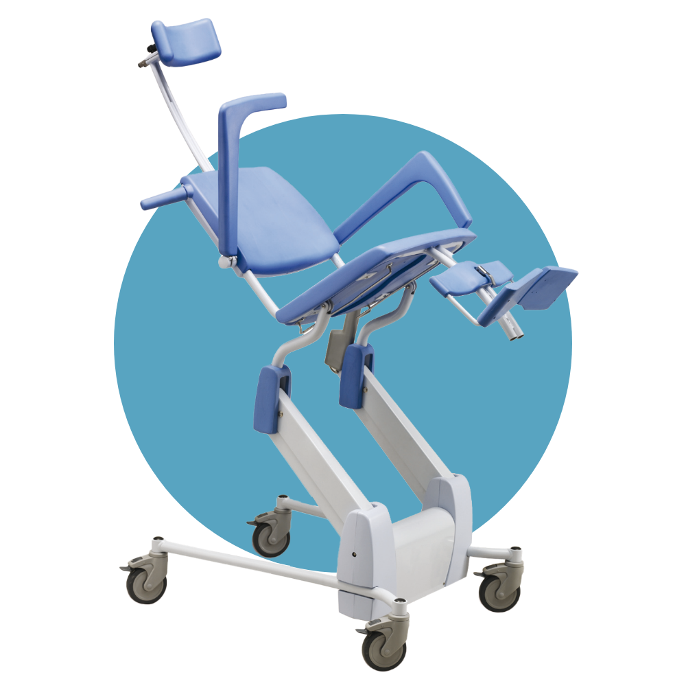 The tilting mobile shower chair was developed to provide caregivers with maximum safety and support during showering and care procedures.